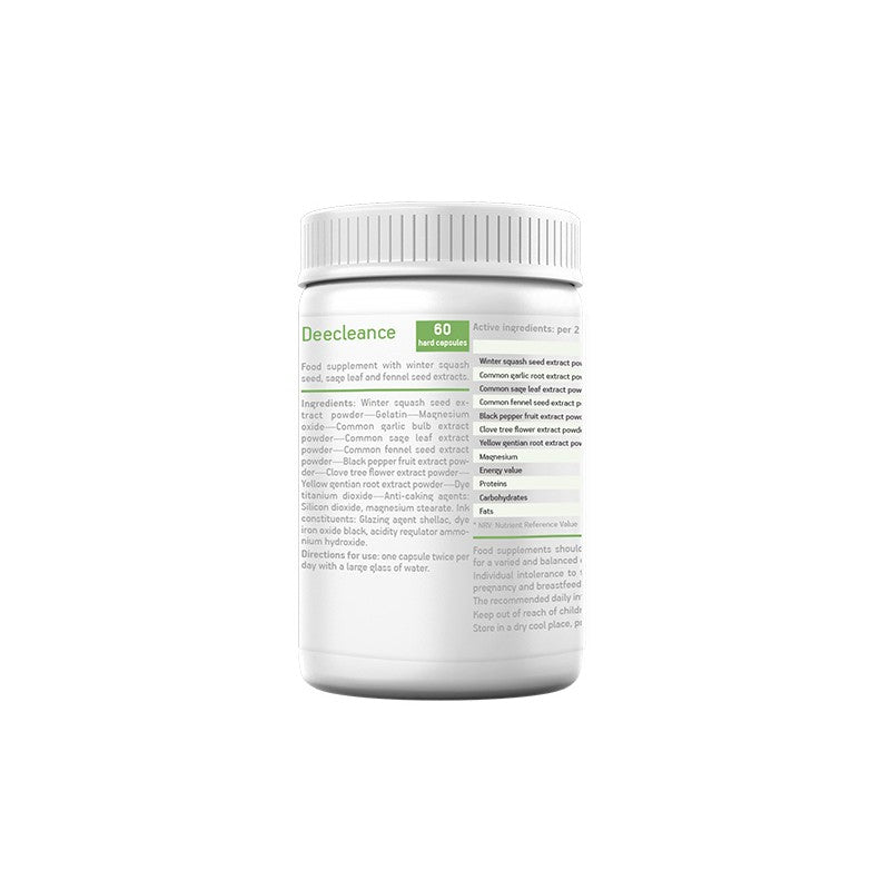 Išskirtinis Deecleance kompleksas su tiksliniu poveikiu užtikrins visapusišką organizmo valymą ir pašalins parazitus, grybelius ir patogenines bakterijas. Galiausiai subalansuotoje produkto formulėje yra 8 unikalūs ingredientai, pasižymintys ryškiu antiparazitiniu poveikiu. Deecleance valo organizmą nuo parazitų, grybelių ir patogeninių bakterijų, bei skatina virškinimą, padidina seilių išsiskyrimą, skrandžio sulčių ir virškinimo fermentų sekreciją. Tai taip pat pagerina žarnyno judrumą ir pašalina toksinus iš organizmo. Jame yra geriausių natūralių antioksidantų, galinčių sukelti galingą antiparazitinį poveikį.